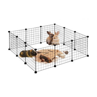 Kovový výběh pro domácí zvířataRozšiřitelná kovová ohrádka pro malá zvířataOhrádka pro králíky, morčata a další malá zvířataNekomplikovaný zásuvný systém pro rychlou a snadnou montážSestavte si prvky, jak chcete – individuální a sofistikovanéVhodné pro 2-podlažní konstrukci včetně 3 bílých dveříMůže být umístěn uvnitř nebo venku na krátkou dobuProtiskluzové podložky zajišťují bezpečné držení...