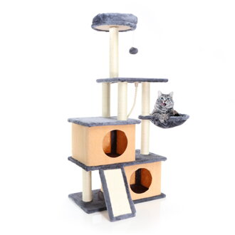 Škrabadlo pro kočky Fudajo tmavě šedé 127cm vysoké škrabadlo s kolébkou