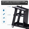 Svařovací vozík vozík na plynovou láhev, 3 police, bezpečnostní řetěz, 4 kolečka, ocel, černý, 71 x 39 x 70 cm