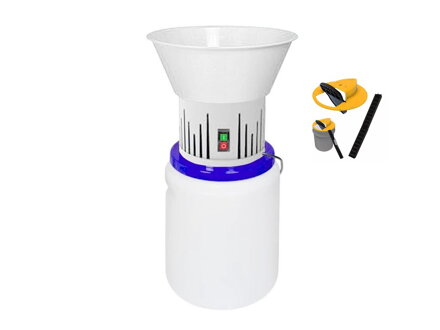 Elektrický šrotovník na obilí s barelovým zásobníkem MILL ET BLUE - HP 0,75kW plus zdarma past na myši v hodnotě 249 KčŠrotovník na obilí, luštěniny a jiné plodiny, hodinový výkon 15-115kg/hod dle hrubosti síta, 20l zásobníkový barel, výkon 0,75kW. Tento menší snadno přenosný šrotovník je velice oblíbený u chovatelů. Šrotování obilí, luštěniny, kukuřici, rýži a dalších plodin, zvládnete s tímto šrotovníkem levou zadní. Elektrický šrotovník má velice výkonný motor s ochrannou proti přehrání, takže se do šrotování můžete pustit naplno a vše poběží jako na drátkách. Parametry produktu:Hmotnost: 8 kg1. Výkon: 0,75kW2. Velikost barelu: 20lKladívkový šrotovník je dodáván s namontovaným sítem o průměru 7mm a jako dárek obdržíte další tři síta o velikosti 1,5 – 2,5 – 5mm + klíč k jejich snadné výměně podle Vašich potřeb. Výborné na tomto šrotovníku je, že namletý šrot si můžete ihned uskladnit v 20l zásobníkovém barelu a uzavřít víkem s pojistným zámkem. Údržba šrotovníku zabere jen chviličku a vydrží Vám řadu let. Čtěte více